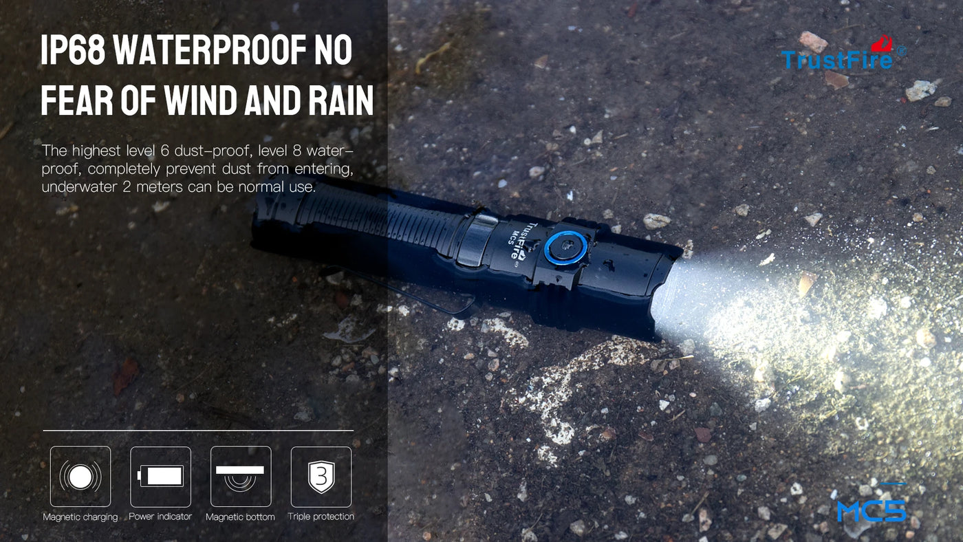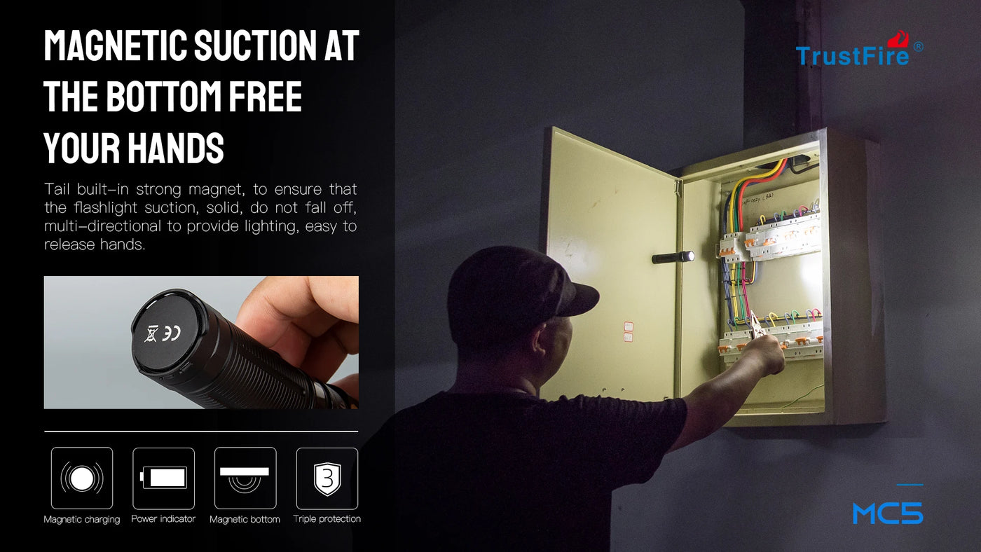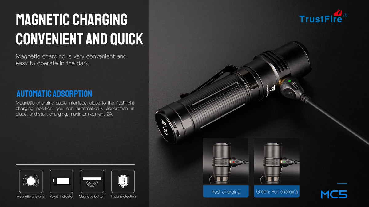 Trustfire MC5 LED Flashlight 3300Lumen Rechargeable Lamp EDC 21700 Battery Torchs with Magnetic USB Charging and Power Indicator