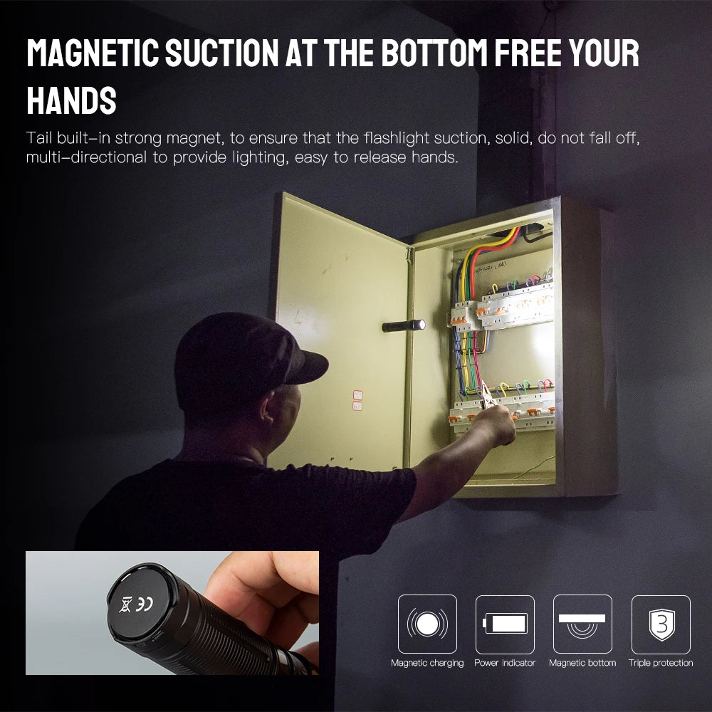 ★Built-in intelligent temperature control system to prevent the flashlight from overheating during use and improve the comfort of use;